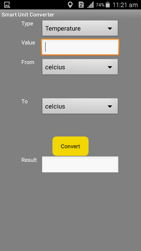 Fourteen: Unit Converter, its convert 8 conversions that are: Temperature, Weight, Length, Power, Energy, Velocity, Area, Volume.