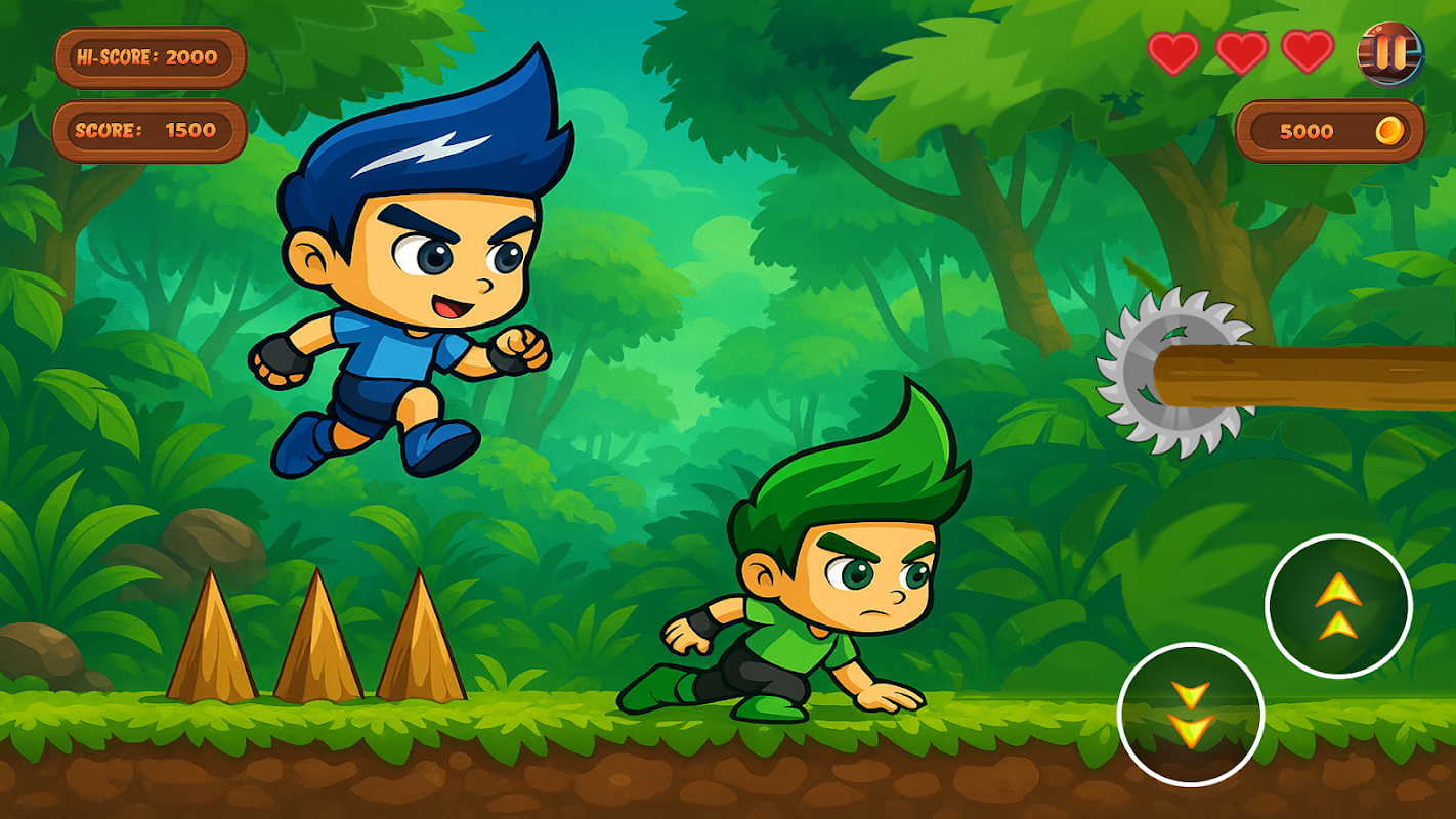 Mach dich bereit für pausenlose Arcade-Action in Smart Boys: Action Run! Dieses energiegeladene, rasante Abenteuer vereint den Nervenkitzel von Endlos-Laufen, Jetpack-Kämpfen, Präzisionssprüngen und intensiven Shooter-Herausforderungen. Rase durch wildes Gelände, springe über knifflige Plattformen und schieße Gegner vom Himmel – alles in einem epischen Offline-Spiel. Renne schnell, fliege höher und kämpfe cleverer!