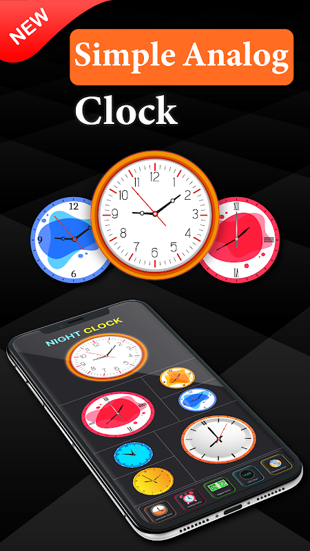 Im Sperrbildschirm Smart Neon Night Clock sind viele verschiedene Analoguhren in den unterschiedlichsten Designs zu finden. Es sind nur zwei Klicks erforderlich, um eine analoge Uhr auszuwählen, die zu Ihrem Stil passt. Verwenden Sie diese Uhren-App, um Ihre Anforderungen an analoge Uhrenhintergründe zu erfüllen.