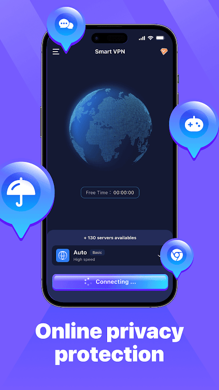 Smart VPN bietet mithilfe der VPN-Technologie eine sichere Proxy-Verbindung über einen verschlüsselten Kanal zwischen Ihrem Gerät und der Ziel-Website. Smart VPN verbirgt Ihre echte IP-Adresse und Ihren Standort, um eine schnelle, zuverlässige, unbegrenzte und sichere Verbindung zu Websites und Apps ohne Einschränkungen bereitzustellen. Mit Smart VPN können Sie Ihre WLAN-Sicherheit und Privatsphäre ganz einfach schützen.