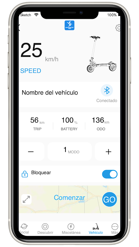 Anwendung für Elektrofahrzeuge smartGyro, die seinen Nutzern von Rollern und
