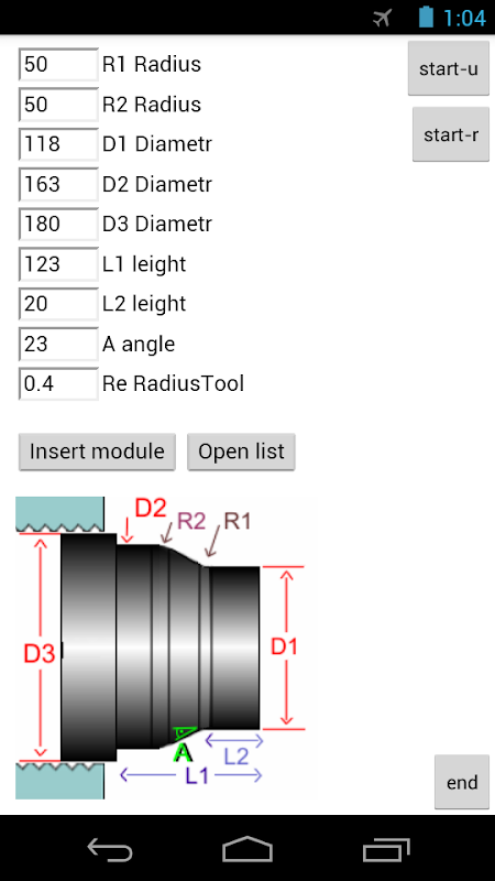 Interaktive Programmierung von CNC-Drehmaschinen mit einem Smartphone. Schnell und bequem. Es erfordert keine großen Kosten und unnötigen Aufwand. Ideal für Arbeit und Training. Sie können komplexe Berechnungen schnell durchführen und den Programmtext im Verzeichnis / storage / MODULE_KJ / CNC speichern.