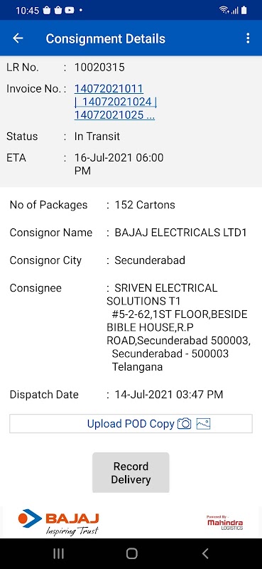 3. Der Händler kann Details zu gelieferten Sendungen und hochgeladene POD anzeigen