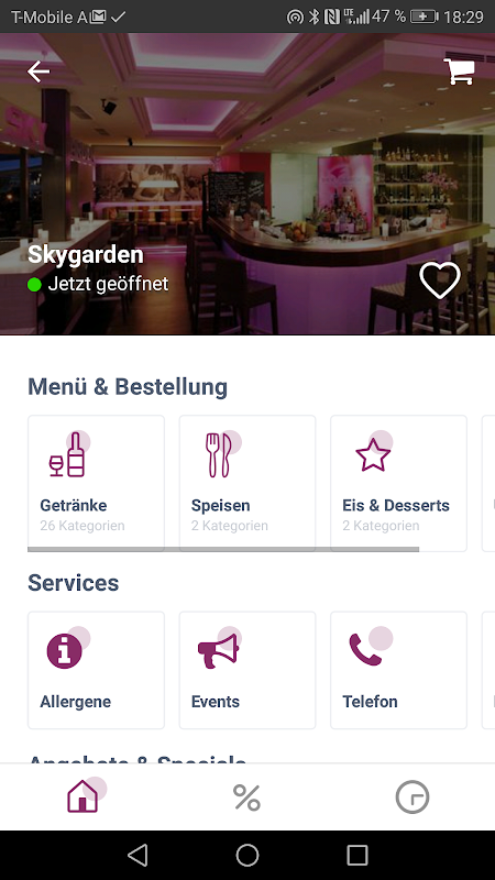 Einfach in der App dein gewünschtes Lokal wählen und hast du Zugriff auf eine Vielzahl von Services,