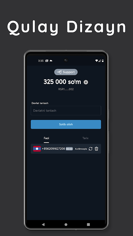 SMSBor -Telegram ilovasidan ro'yxatdan o'tish uchun sms xizmati. Ilova orqali Telegram ilovasi uchun yangi raqam va raqam uchun beriladigan smsni qabul qilishingiz mumkin