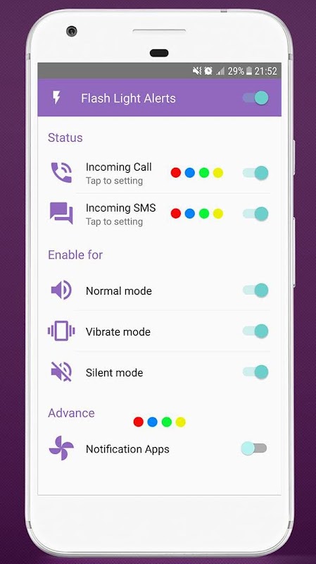 Flash-Benachrichtigung, Flash-Benachrichtigungen sind für die Ausführung im Hintergrund Ihres Telefons optimiert. Durch die Möglichkeit, im Hintergrund zu laufen, müssen Benutzer nicht immer den Flashlight-Anruf öffnen und stellen dennoch sicher, dass sie keine Anrufe verpassen. Sie können auch den Blitzmodus einstellen, um Batteriestrom zu sparen. Das bedeutet, dass Sie den Blitz so einstellen können, dass er nicht ausgelöst wird, solange der Akkuladestand den zulässigen Grenzwert erreicht hat. Diese Funktion der LED-Benachrichtigung ist besonders nützlich, wenn der Akku des Telefons nicht mehr voll ist, Sie das Telefonladegerät nicht zur Hand haben, es aber dennoch längere Zeit verwenden müssen.