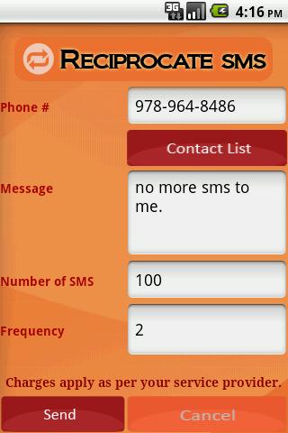 Reciprocate SMS – This is the second feature, with the “SMS Retaliator”, you can send to either loved one or bothering one with the same message as many times as you want and at any time interval you want. All you need to do is select the “Reciprocate SMS” button, and you are good to go. If you want to play a harmless prank or give the person bothering you a taste of their own medicine, you can make use of this feature.