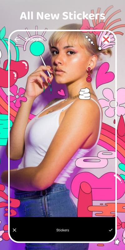 Fügen Sie Aufkleber hinzu: Wählen Sie aus einer großen Auswahl an Aufklebern, um Ihren Fotos Persönlichkeit und Stil zu verleihen und Ihnen dabei zu helfen, sich auf kreative Weise auszudrücken.