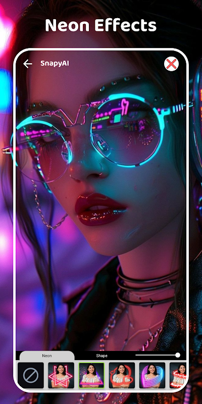 Wenden Sie atemberaubende Effekte an: Fügen Sie einzigartige Neon- und Formeffekte hinzu, um Ihren Fotos einen frischen, modernen Look zu verleihen, der auffällt.