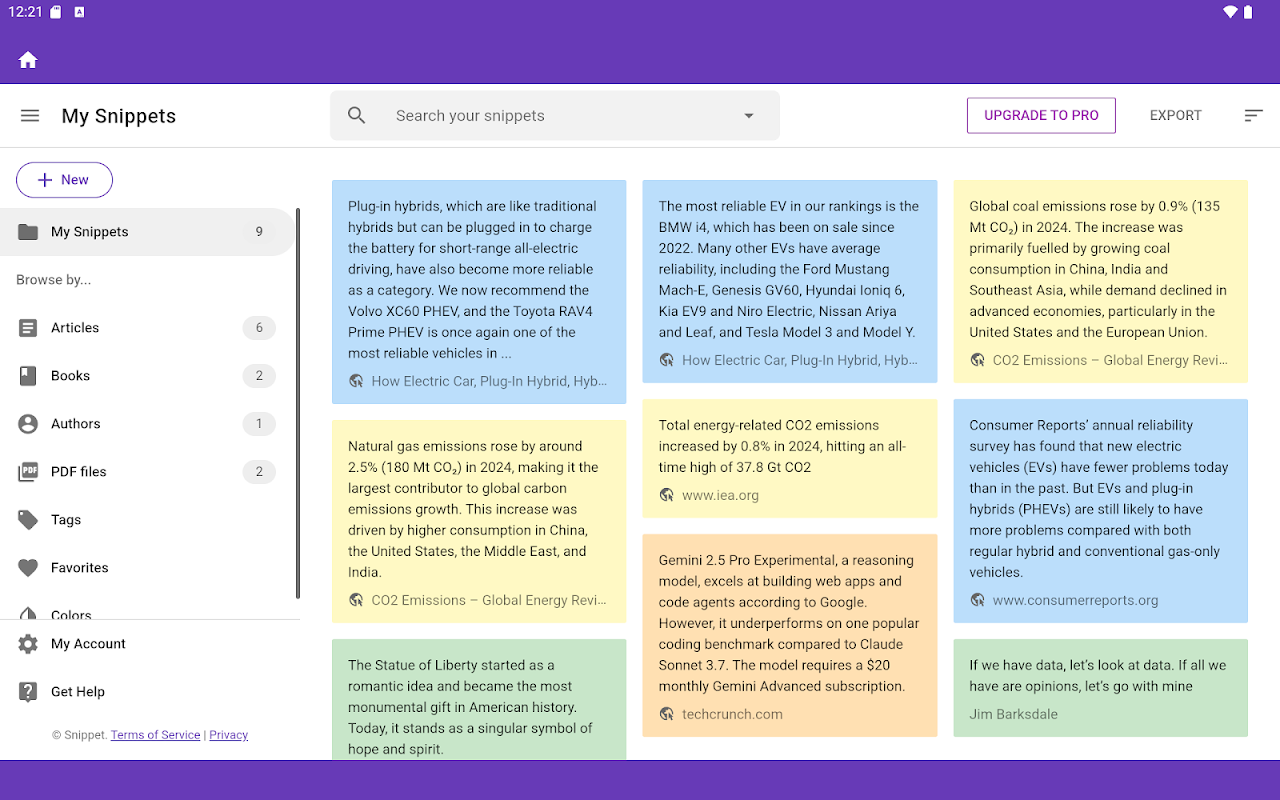 Mit Snippet Highlighter – Web & PDF können Sie Text von Websites, PDFs und Kindle ganz einfach markieren, organisieren und exportieren. Synchronisieren Sie Ihre Markierungen geräteübergreifend, gruppieren Sie sie mit Ordnern und Tags, fügen Sie Notizen hinzu und durchsuchen Sie Ihre gespeicherten Inhalte schnell. Perfekt für Studierende, Berufstätige und begeisterte Leser – damit bleiben Ihre Recherchen und Erkenntnisse jederzeit und überall übersichtlich und zugänglich.
