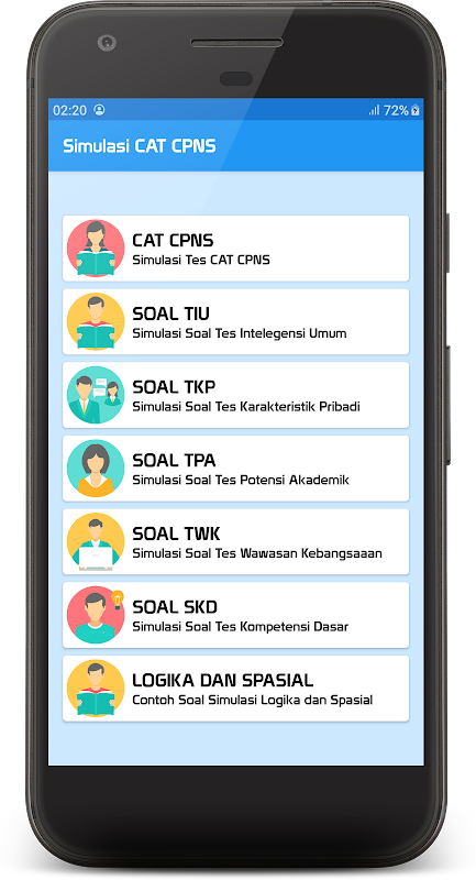 CAT CPNS steht für Computer Assisted Test CPNS, ein Test zur Rekrutierung von CPNS, der online mit einem Computer durchgeführt wird. Diese CPNS CAT TEST-Anwendung ist ein digitales computergestütztes Testsimulationsmedium (CAT), das Material und Beispielfragen für angehende Beamte enthält, die an der Auswahl der von der Regierung durchgeführten CPNS- oder ASN-Tests teilnehmen.