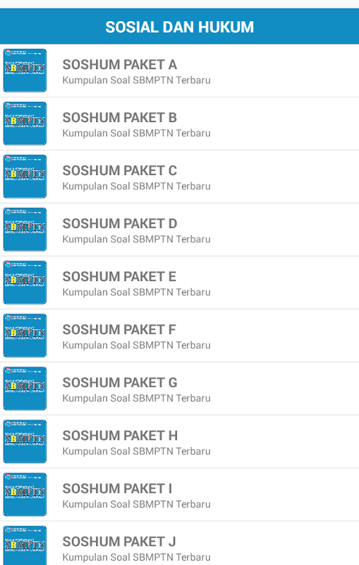 Aplikasi Soal SBMPTN 2021 ini merupakan simulasi SBMPTN berbasis android yang berisi soal-soal SBMPTN dengan konsentrasi SAINTEK,SOSHUM,dan Campuran.
