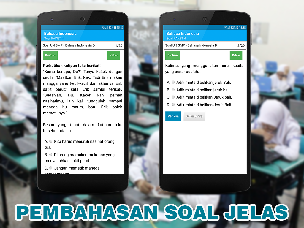 Darüber hinaus ist die Anwendung für die UNBK SMP MTS SIMULATION TEST QUESTIONS auch mit Antworten und Bewertungsergebnissen aus den von Ihnen beantworteten Fragen ausgestattet. Weitere Vorteile bei der Bewerbung für die UNBK SMP MTS (National Examination) TEST Fragen sind: