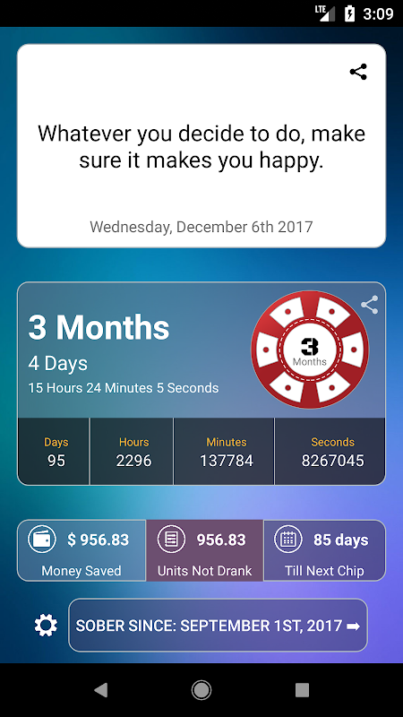 Verfolgen Sie Ihre Nüchternheit Datum und die Anzahl der Tage nüchtern gewesen sein!