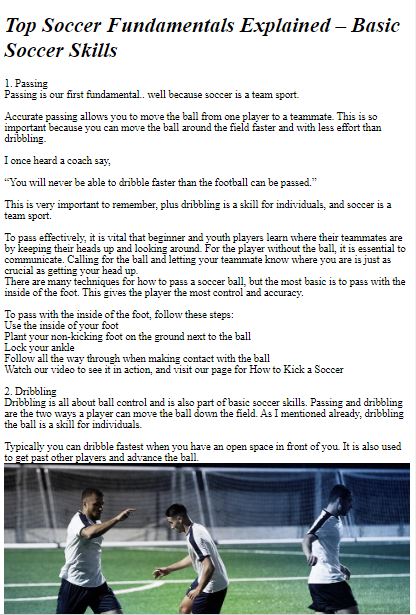 Passen: Unterricht in verschiedenen Passtechniken wie Kurzpässen, langen Pässen und Steilbällen.