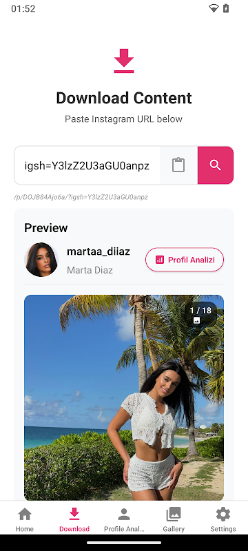 2. Öffne SocialSaver und füge den Link ein.