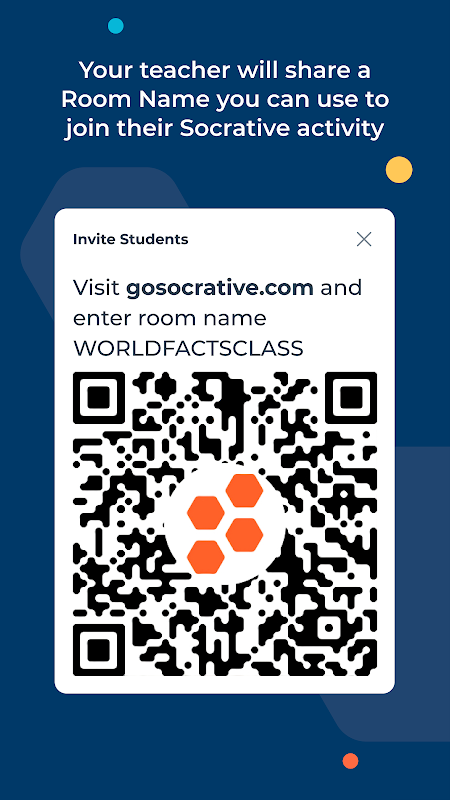 Die Schüler teilen sich ihr Verständnis durch die Beantwortung formative Beurteilung Fragen in einer Vielzahl von Formaten: Quiz, kurze Frage Umfragen, Ausfahrt Tickets und Raum-Rennen. Sobald die Schüler starten Sie die Socrative Studenten App, werden sie aufgefordert, Lehrerzimmer über einzigartigen Code des Lehrers zu verbinden. Kein Schüler-Konten erforderlich!