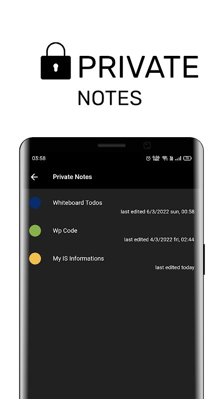 • Private Notizen: Sie können auch private Notizen erstellen! Sie können auf Ihre privaten Notizen zugreifen, indem Sie lange auf den Titel "Notizen" drücken! Wenn Sie einen Fingerabdruck auf Ihrem Gerät haben, können Sie mit Ihrem Fingerabdruck auf private Notizen zugreifen. Andernfalls müssen Sie zuerst ein Passwort festlegen.