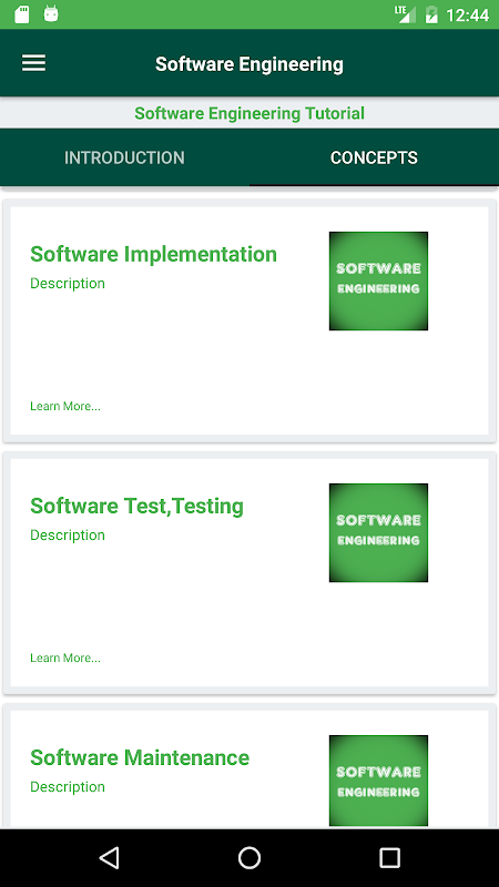 Software Engineering Tutorial app provide the great User Interface that helps to learn software engineering easily and we covers most of the software engineering topics.