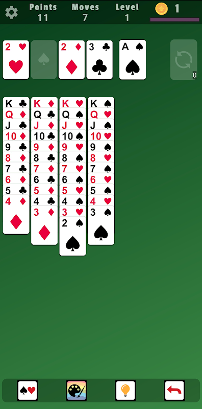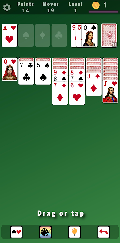 Solitaire ist eines der beliebtesten Einzelspieler-Kartenspiele. Sie werden dieses Solitaire-Spiel mit neuen, schönen und leicht zu lesenden Karten lieben.