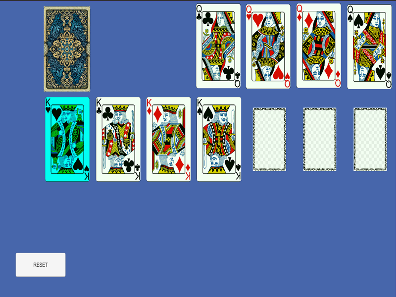 THIS IS AN SOLITAIRE GAME WHICH WAS WE PLAY IN COMPUTER JUST ARRANGE THE CARD IN ONE RED AND ONE BLACK AND WIN