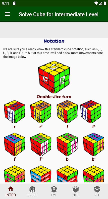 Die App Solve Cube for Intermediate Level führt Sie Schritt für Schritt zum Lösen des Würfels 3x3x3 und der Verwendung von Algorithmen zum Lösen des Würfels. Wenn Sie konsequent üben, werden Sie zu einem Speedsolver. Solve Cube for Intermediate Level App verwendet die CFOP-Methode.