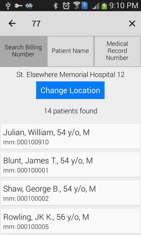 • Patientensuche über Name, Patienten-ID, Kontonummer oder manuelle Dateneingabe