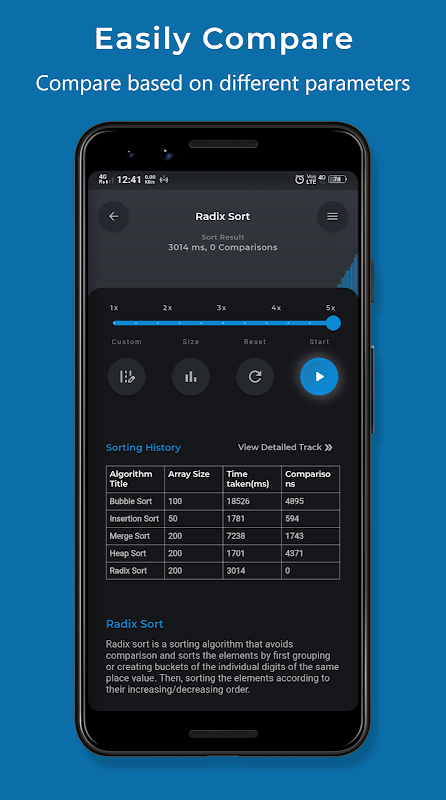 Sorting Visualizer zur Visualisierung verschiedener Sortieralgorithmen mit detaillierten Informationen.