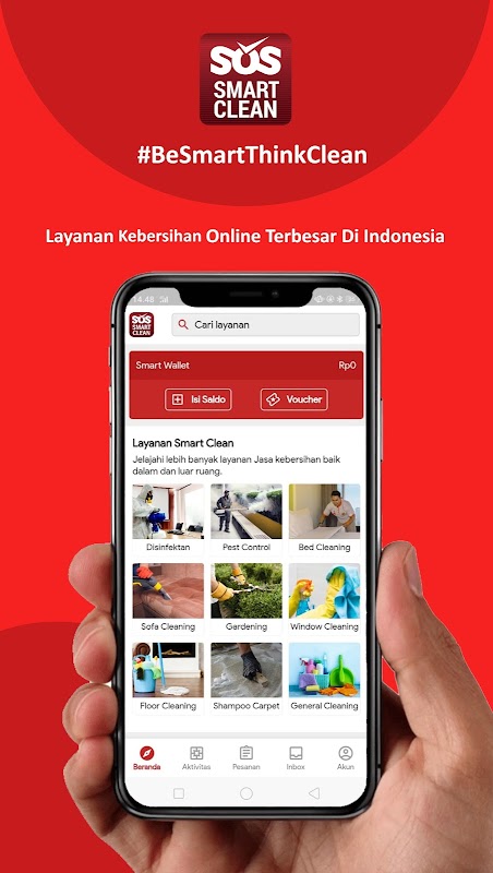 Stellen Sie sicher, dass Sie Ihre Hände waschen, bevor Sie die Smart Clean-Anwendung öffnen