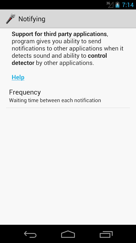 ● Fähigkeit, Benachrichtigungen an andere Anwendungen wie zB Tasker zu senden, wenn es Geräusche erkennt