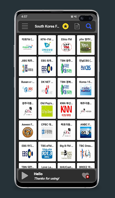 This is the most simple & free , fast and clean app for listening all the radio stations from South Korea for free .