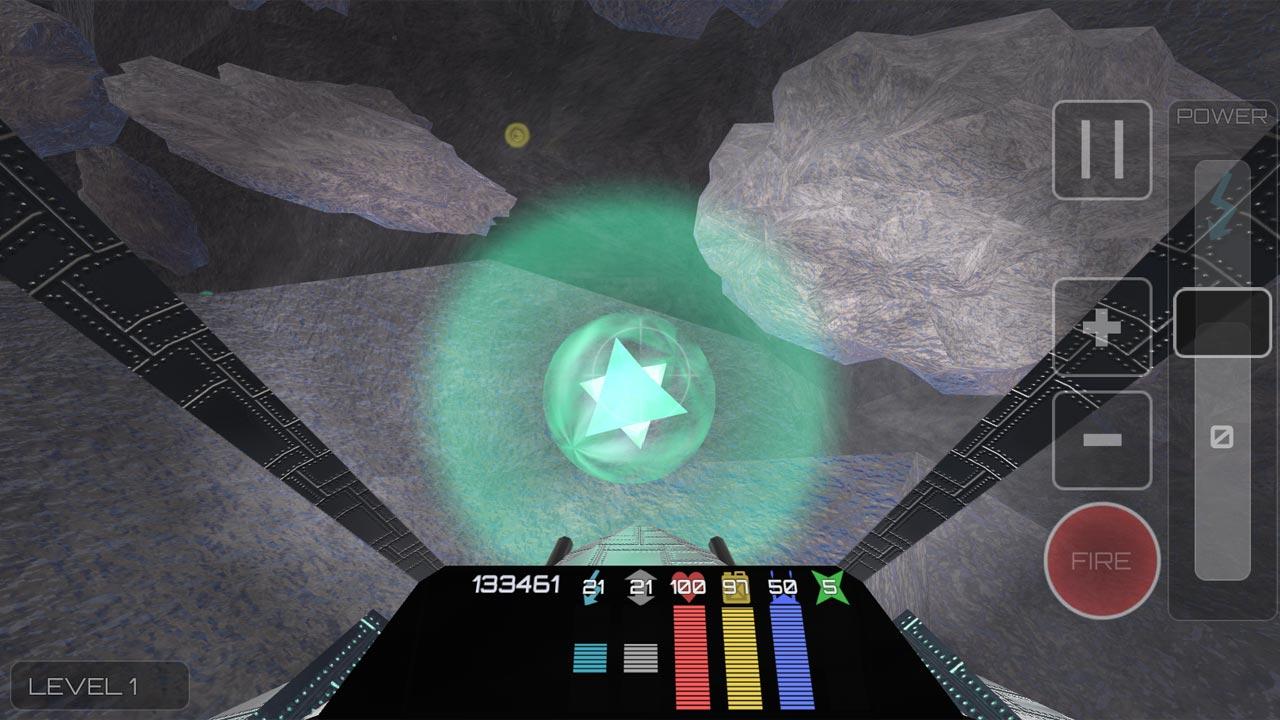 Ein 3D Space shooter innerhalb eines großen Höhlenlabyrinths.