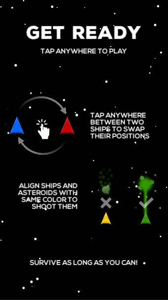 Tap between two colorful ships to swap their positions and shoot the asteroids.