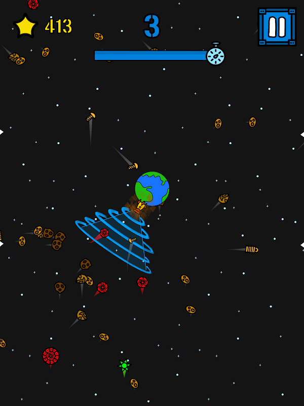 - Berühren und halten, um Weltraummüll zu bewegen und aufzusaugen.