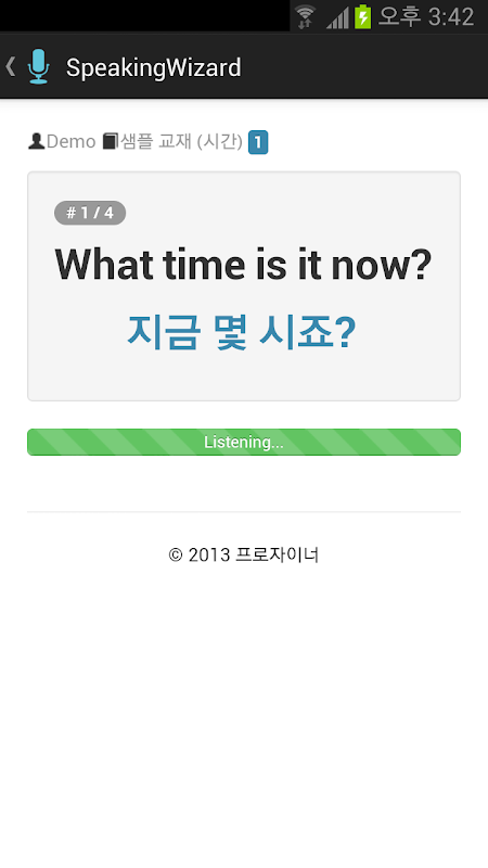 스피킹위저드(Speaking Wizard)는 초간단 영어 말하기 학습도우미입니다. 안드로이드폰에 내장된 음성인식엔진과 음성합성엔진을 이용해 주어진 문장에 대한 말하기학습을 간단하게 할 수 있도록 도와줍니다.