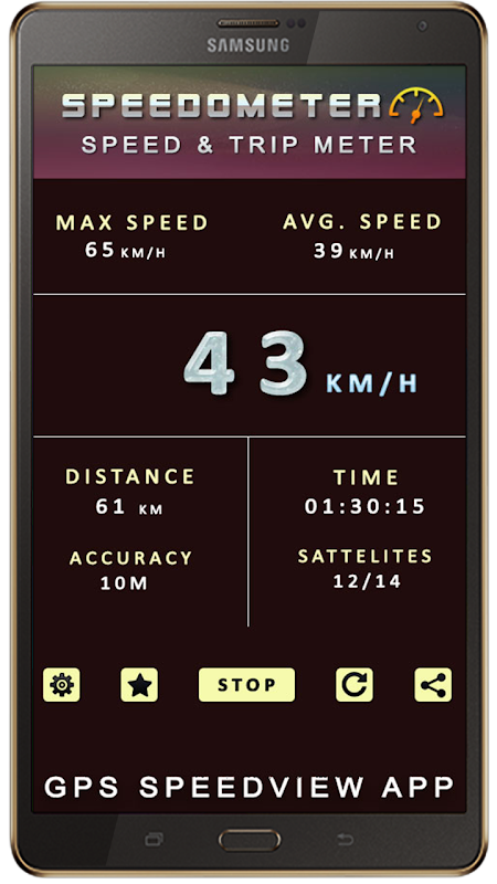 Speedometer For Car & Bike: GPS Speed & Trip Meter is a free GPS based digital head up display that shows useful speed and distance information for your journey, navigation and travel. Ideal if your vehicle speedo meter has died, you want to verify your vehicle speed or you just want to know your speed when cycling, running, flying, sailing etc.!