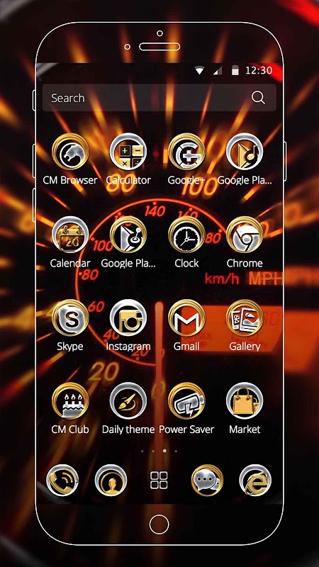Racing Tachometer Theme mit Auto Tacho Live Wallpaper und coole Auto Icons Packung