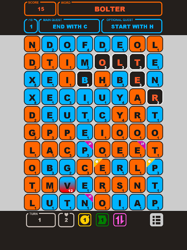 At every turn, the player has to make a hard decision. Should I claim that tempting looking bomb, which I can later use to bring that 'S' closer to the long word I've been planning? Or, should I get rid of the 'break' spell on that 'D'? How about the 'Begin with W' main quest which I'm left with just 3 turns to deal with before losing a life? Oh wait, that fevered 'QU' tile that boosts a letter score by x3 sure looks too yummy to resist, especially now that it's surrounded by 'I' and 'Z'!!