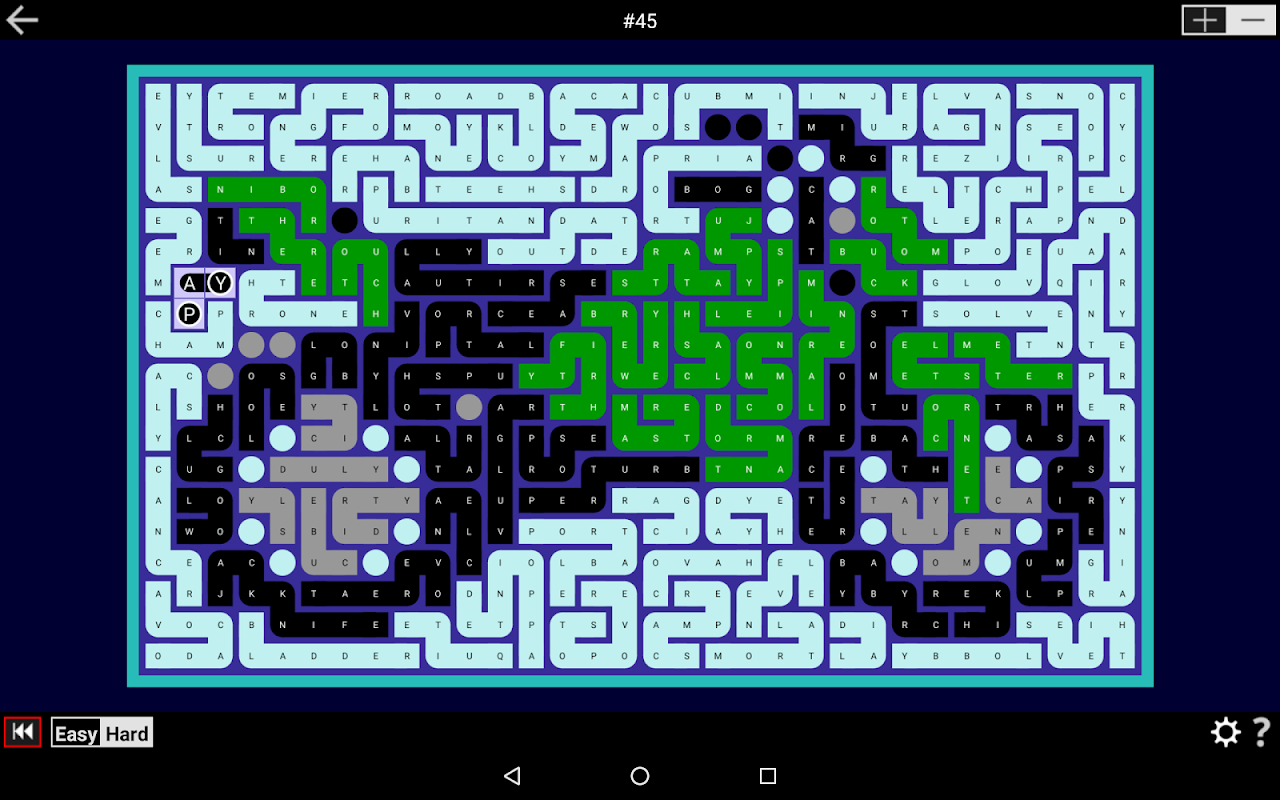 ---EASY-Modus - Die Anfangsbuchstaben sind mit 2 Ringen markiert, die richtigen Wörter werden eingefroren