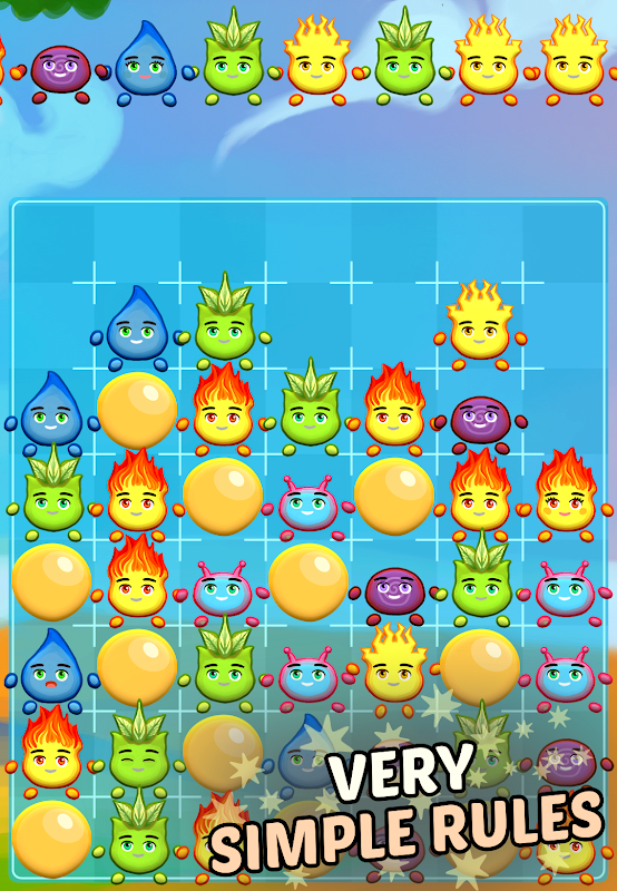 In Match 3 müssen Sie die benachbarten Elemente antippen und verschieben, um Gruppen von drei oder mehr Elementen in einer Reihe oder Spalte zu bilden.