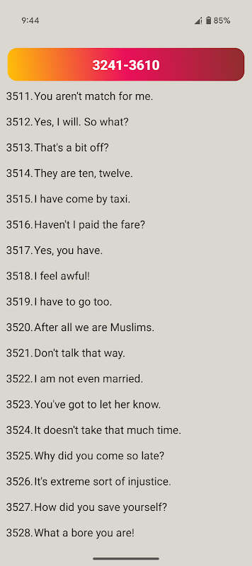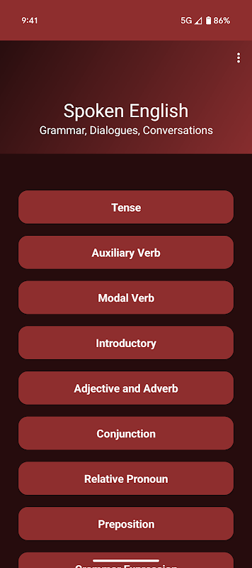 Diese Anwendung hilft Benutzern, grundlegendes Englisch bis fortgeschrittenes Englisch zu lesen und zu schreiben, fließend Englisch zu sprechen und perfekt Grammatik zu lernen. Benutzer werden mit dieser Anwendung rund 250 Arten von Gesprächen aus dem wirklichen Leben lernen.