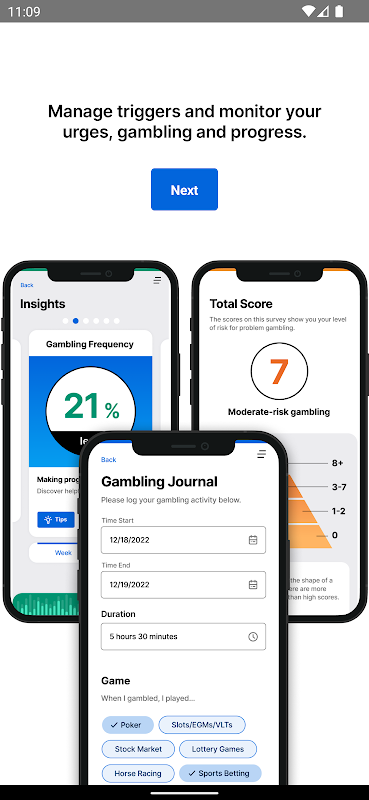 Learn to identify the types of situations that trigger your urges and result in gambling beyond your limits, including your mood, where you gambled, and who you were gambling with. Discover strategies and tips that can help you manage urges to gamble. Learn and practice how to cope with lapses, prevent relapses before they occur, and limit the duration and harm of relapses when they do occur. The app also allows you to get quick access to gambling support 24/7.