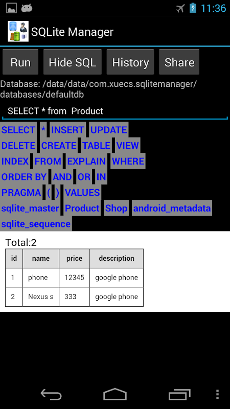 (Ads Free version released , you can buy it here: https://market.android.com/details?id=com.xuecs.sqlitemanagerpro)