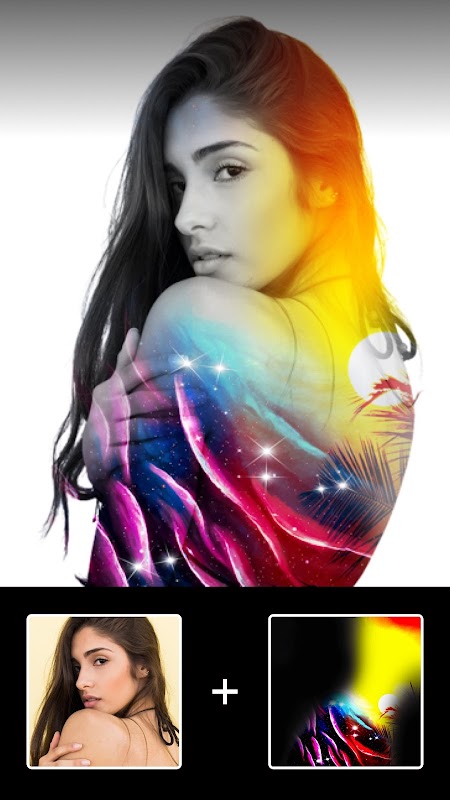 Erstellen Sie ganz einfach einen Doppelbelichtungseffekt gemischter Bilder. Künstlerische Schwarz-Weiß-Mischung und atemberaubender Farbmixer.