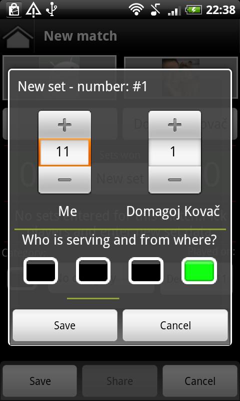 Record your sets and matches, who won and who lost.Review history of your opponents and your matches, and even add to your opponents data regarding their good and bad sides.