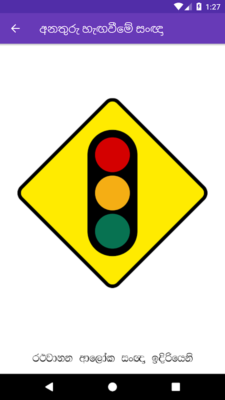 ✓ මාර්ග සංඥා පිළිබඳ විස්තර අන්තර්ගතය.