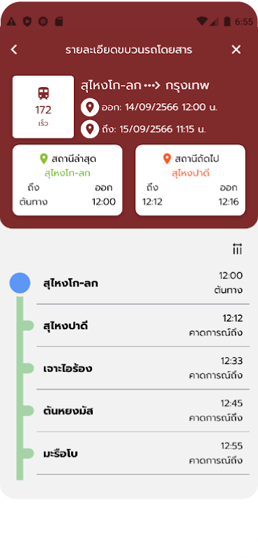 Eine Anwendung für gecharterte Güterverkehrsunternehmen. und Passagiere der Staatsbahn von Thailand Wird verwendet, um Zugfahrpläne zu überprüfen und den Verkehr von Güterzügen zu verfolgen. und ein Buszug