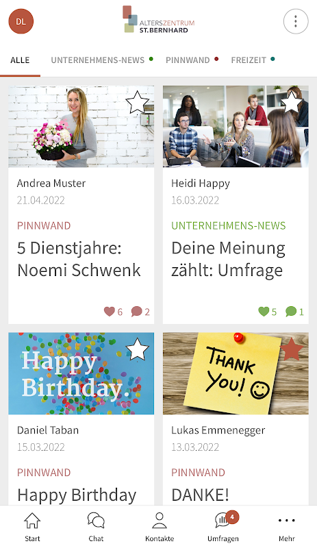 Erfahren Sie ortsunabhängig und jederzeit die neuesten Informationen über Ihr Unternehmen, finden Sie einfach und unkompliziert Ihre Arbeitskollegen im Kontaktverzeichnis und chatten Sie 1:1 oder in Gruppenchats. Alles mit zuverlässiger Schweizer Software auf sicheren Schweizer Servern.