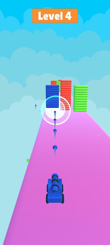 Stack Blaster ist ein unterhaltsames und herausforderndes Spiel, in dem es Ihr Ziel ist, das Ende des Levels zu erreichen, indem Sie bunte Stapel abschießen und zerstören, die Ihnen den Weg versperren.