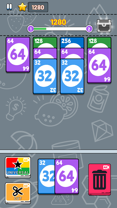 - Stack the same number cards to merge